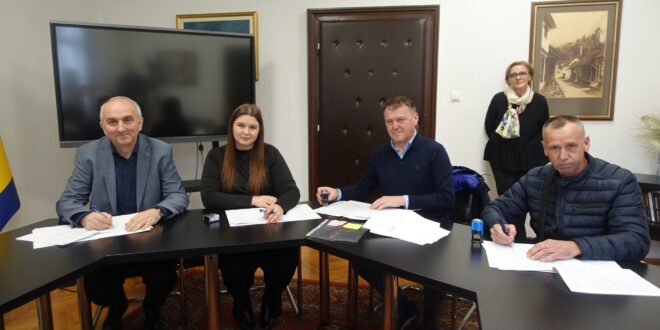 Općinski načelnik Suad Huskić sa predstavnicima izvođača radova potpisao je danas nove ugovore za radove na projektima: Asfaltiranje puta Cerovac, MZ Jelah, Asfaltiranje puta Mujkići, MZ Dž. Planje, Asfaltiranje u naselju Salkanovići, MZ Medakovo, Uklanjanje stijene u ulici Skendera Kulenovića – put prema Hrvatinovićima, MZ Tešanj. Ugovor je potpisan i za Rekonstrukciju priključnog vrelovoda ispred objekta BH Pošte i Općine Tešanj.