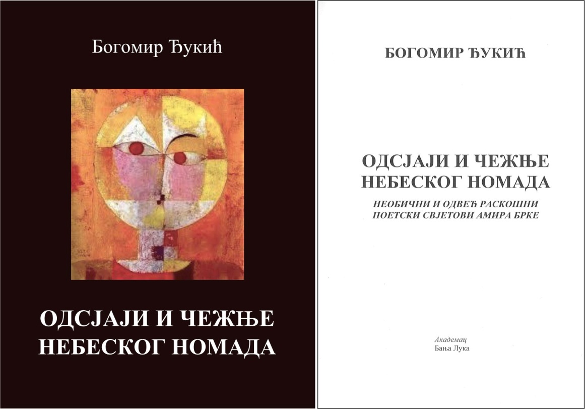 U izdanju kuće Akademac iz Banjaluke, prošle godine je objavljena još jedna, jedanaesta po redu knjiga o pjesništvu Amira Brke. Njen autor je književnik i filozof Bogomir Đukić, naslov joj je Odsjaji i čežnje Nebeskog nomada, a podnaslov Neobični i odveć raskošni poetski svjetovi Amira Brke. Ova obimna knjiga (340 str.) strukturirana je u šest poglavlja: Ka pjevanju i mišljenju Amira Brke; Evolucija i faze, te priroda i karakter Brkinog pjevanja; Versi u vrtlogu ruina što se podupiru; Poetski uvidi i gonetanja s vertikala nebeskog nomada; Kroz odsjaje i čežnje snova poetskog mizantropa; U fokusu dijalektike tmine i posmrtnih pjesama.